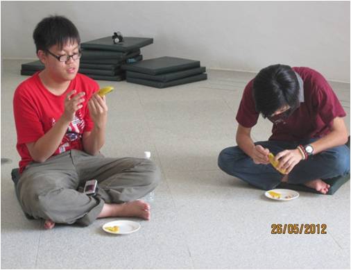 The English Section of Kuching Buddhist Society organized a one-day awareness workshop entitled “Here & Now” for students on the 25 May 2012. This workshop aimed to introduce students to different strategies of focusing the mind in the here and now. Most of us, students in particular, live hectic and stressful lives. Buddhism has a lot to offer to the modern world as it has specific techniques to help us focus in the here and now. By being present, we are not burdened by remorse of the past or anxiety for the future. In this way, we are able to lead more peaceful and happier lives.
